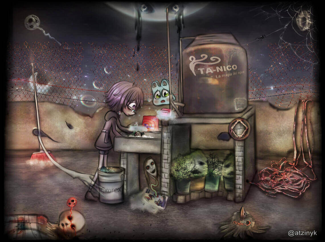 💡 Nota: Aquí el fondo no es un extra; es parte esencial de la obra. Se creará una escena completa donde el personaje interactúa con una atmósfera y composición detallada.